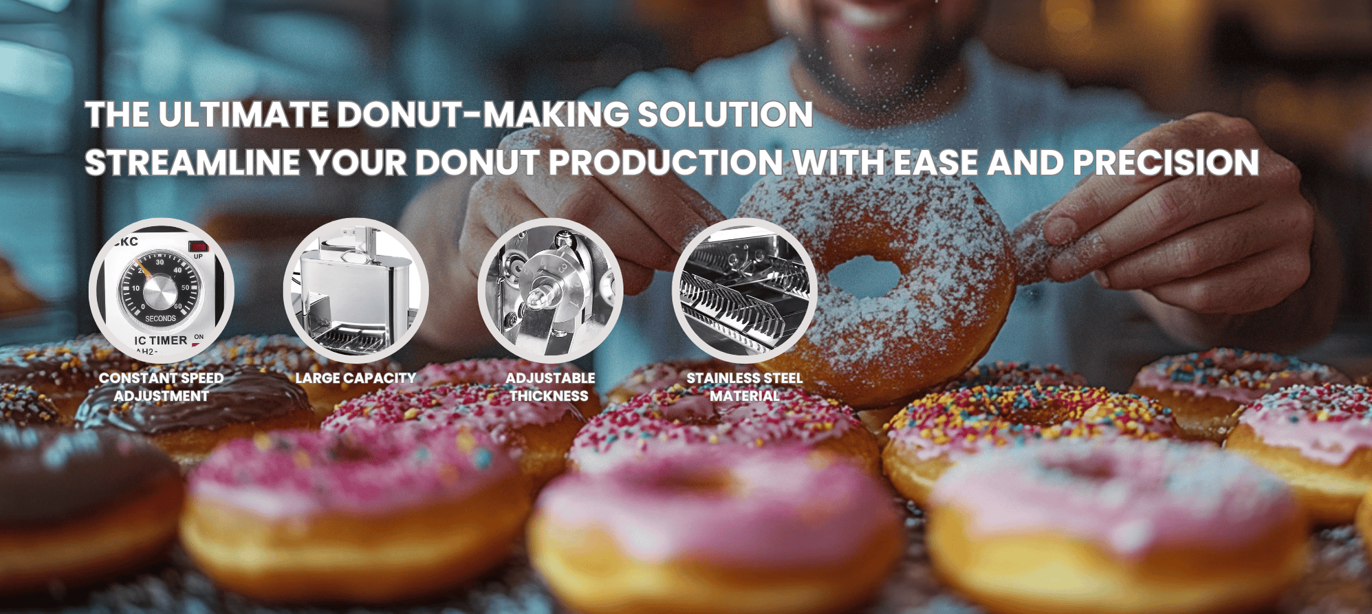 Constructed from food-grade, high-quality 304 stainless steel, our fully automatic donut making machine ensures exceptional cleanliness and sanitation. Designed for easy operation and energy efficiency, this durable machine is a reliable addition to any commercial kitchen, delivering long-lasting performance and consistently perfect donuts.