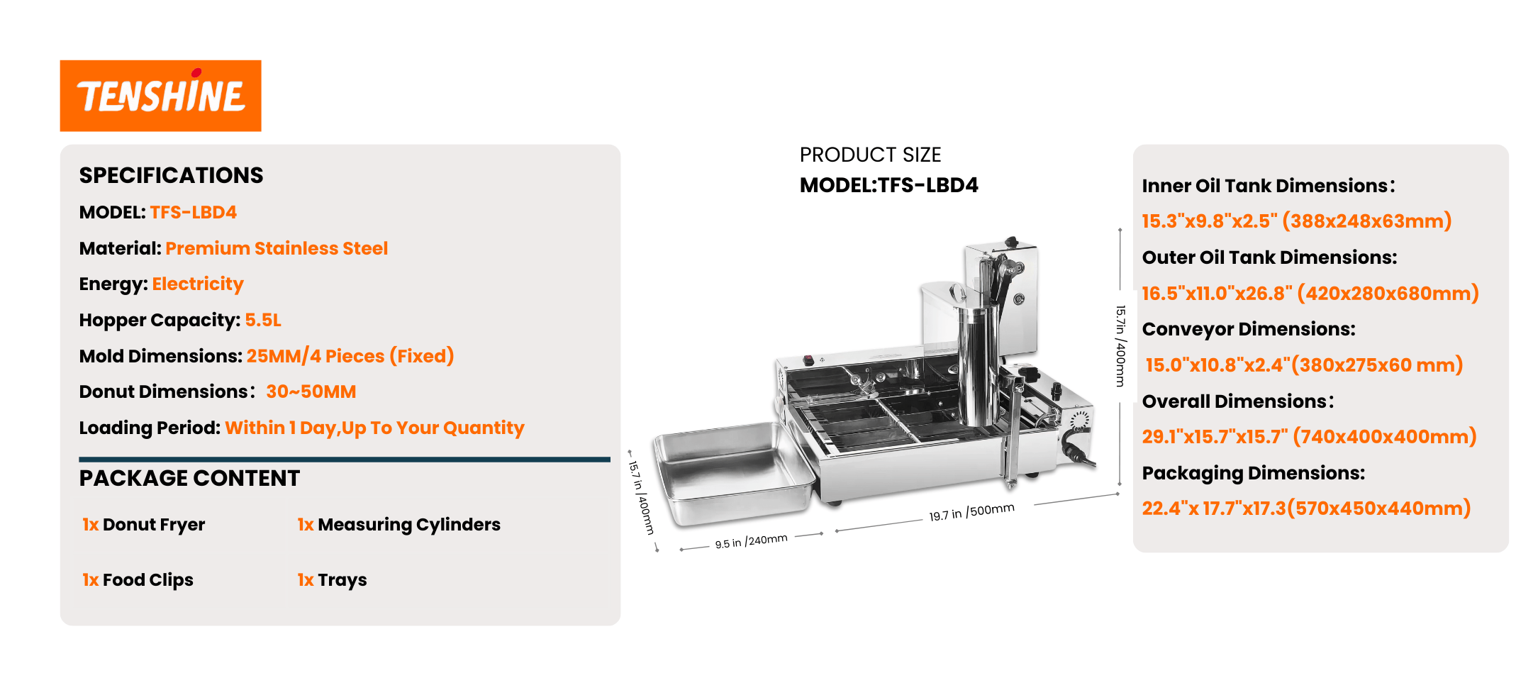 4 Row Auto Doughnut Maker with Mechanical Control Panel  Adjustable Thickness Fryer LBD-4 TENSHINE