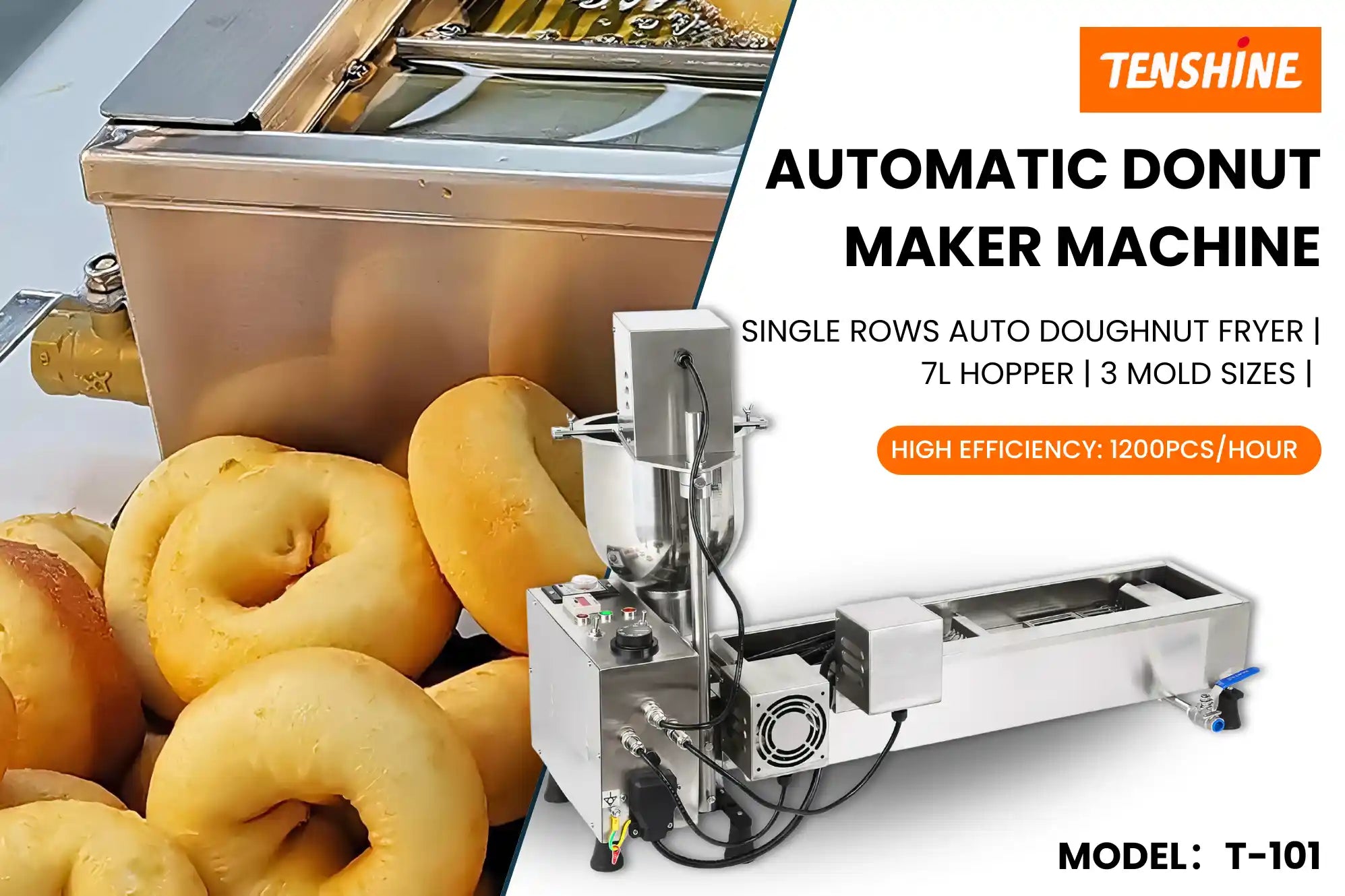 Máquina comercial automática para hacer donas | Freidora de donas de una sola fila | Tolva de 7 L | 3 tamaños de molde | T-101
