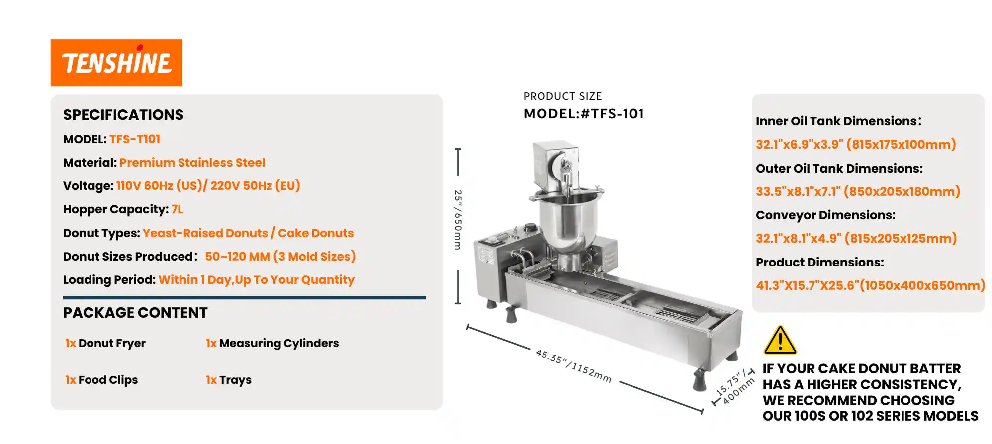 Commercial Automatic Donut Maker Machine | Single Row Doughnut Fryer | 7L Hopper | 3 Mold Sizes | T - 101Auto Doughnut Maker