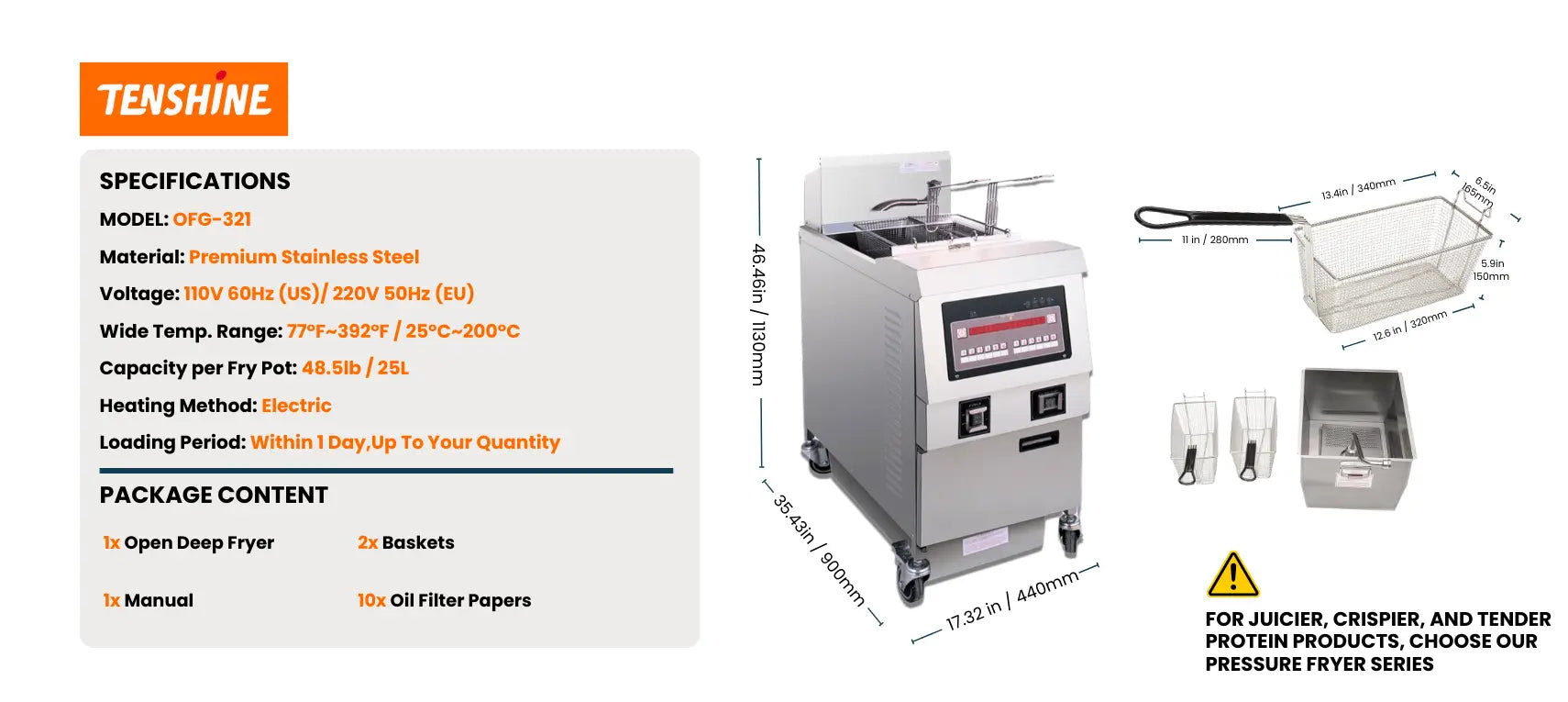 OFG - 321 Commercial Gas Fryer – Efficient, Durable & Cost - SavingCommercial Gas Floor Open Deep Fryers