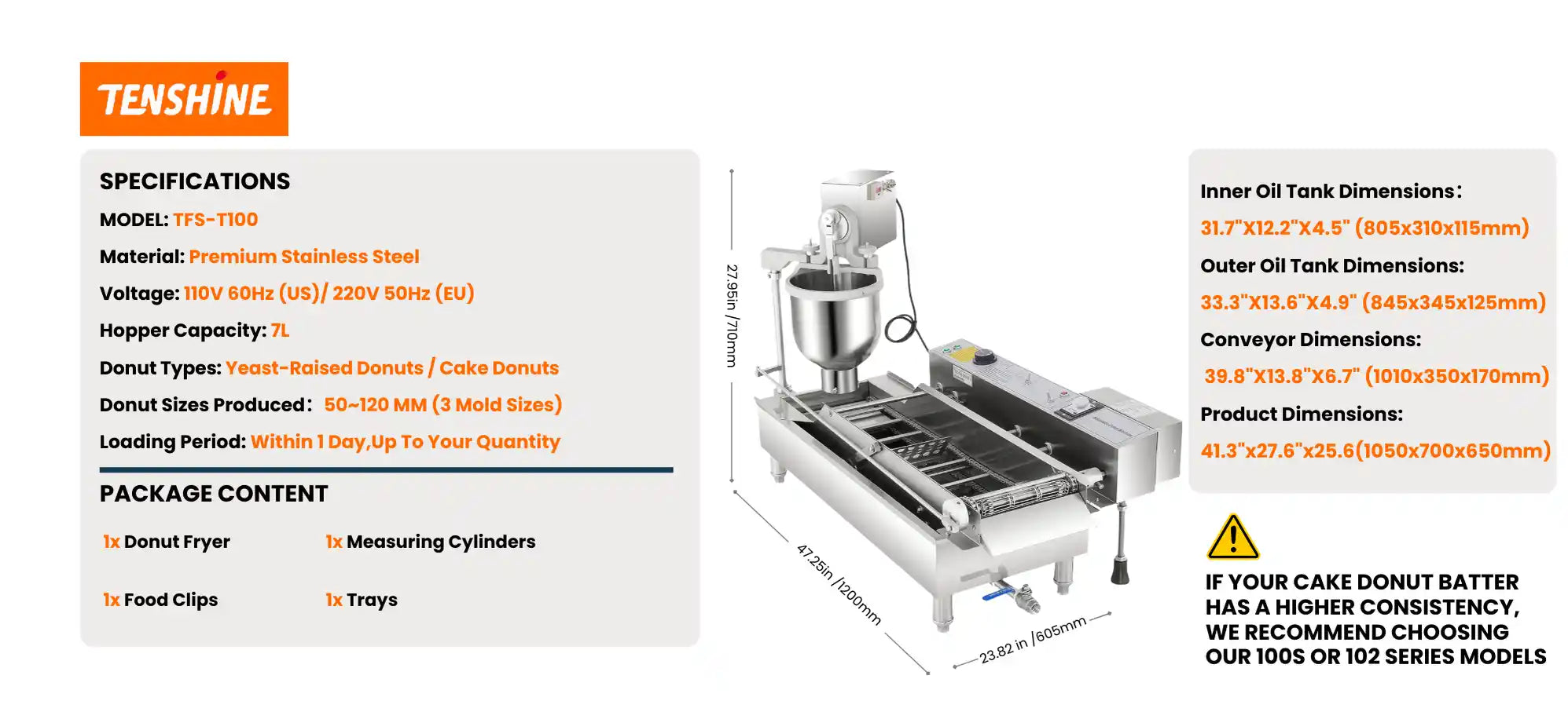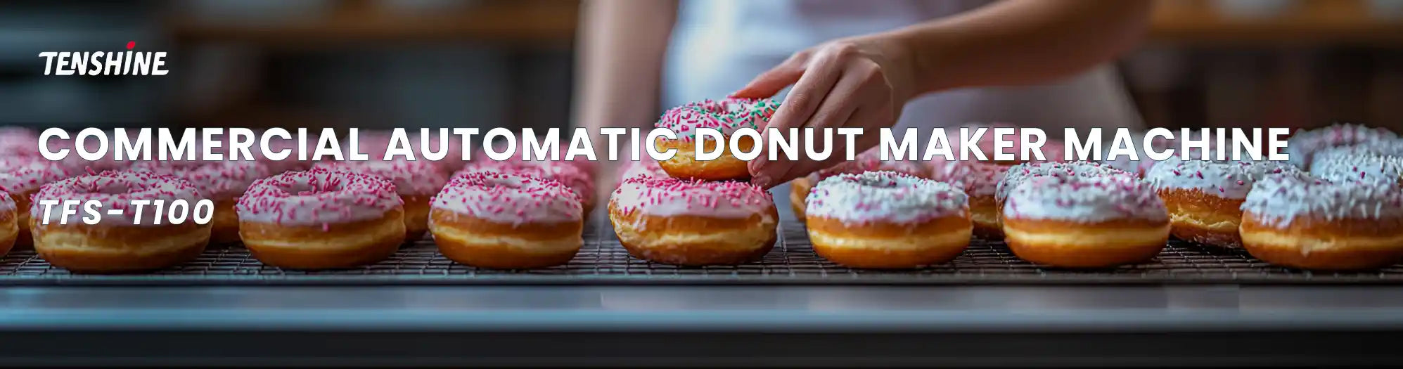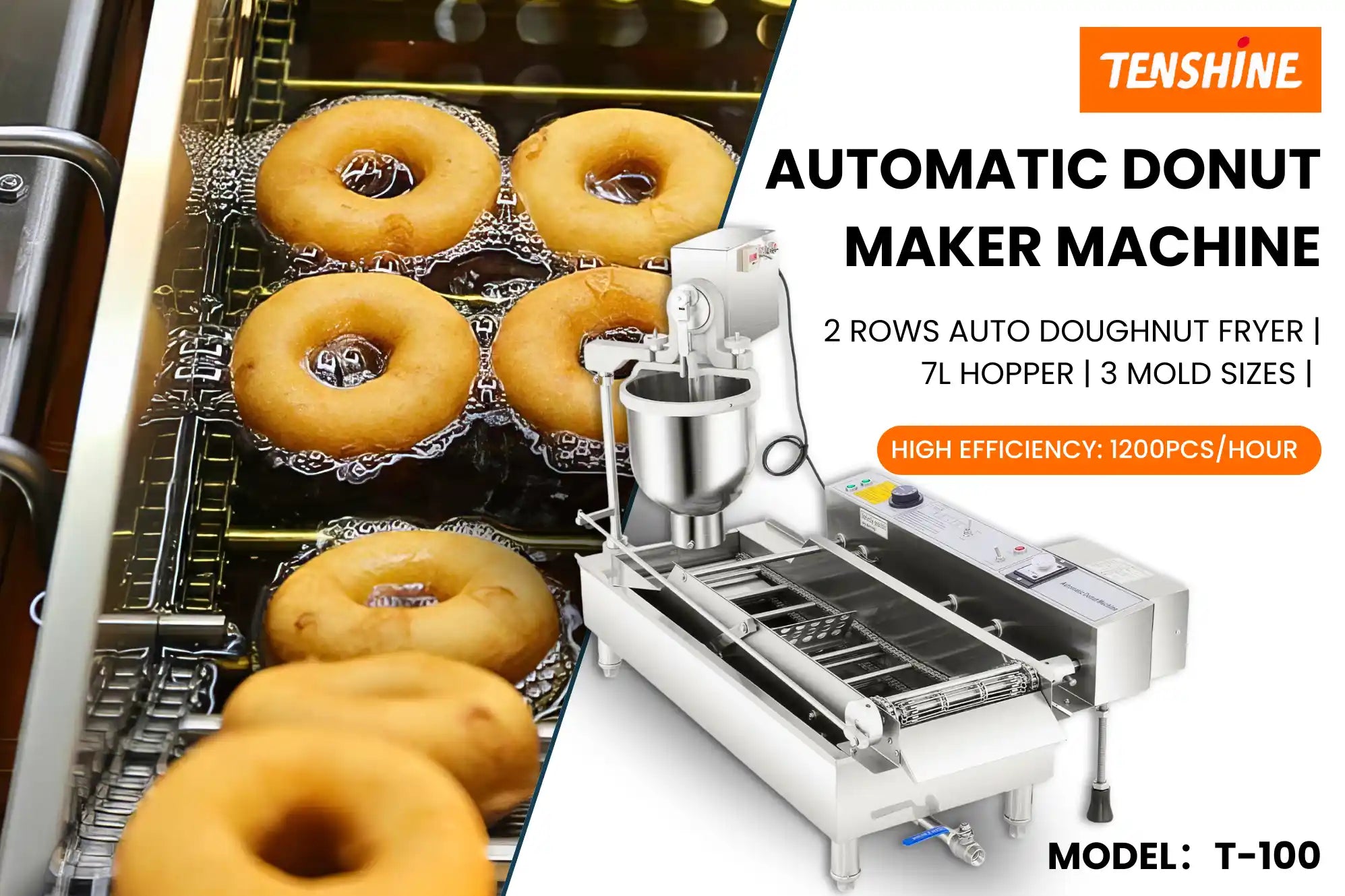 Commercial Automatic Donut Maker Machine | 2 Rows Auto Doughnut Fryer | 7L Hopper | 3 Mold Sizes | Intelligent Control Panel | T-100 TENSHINE