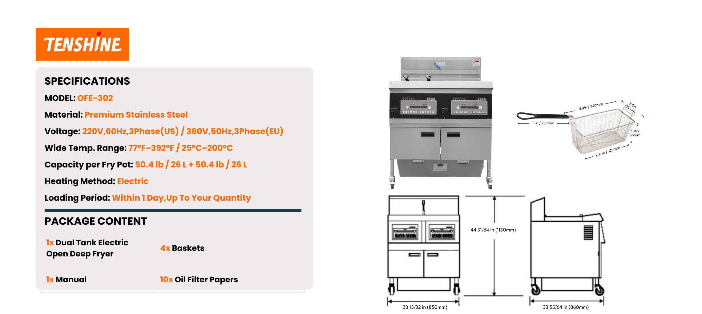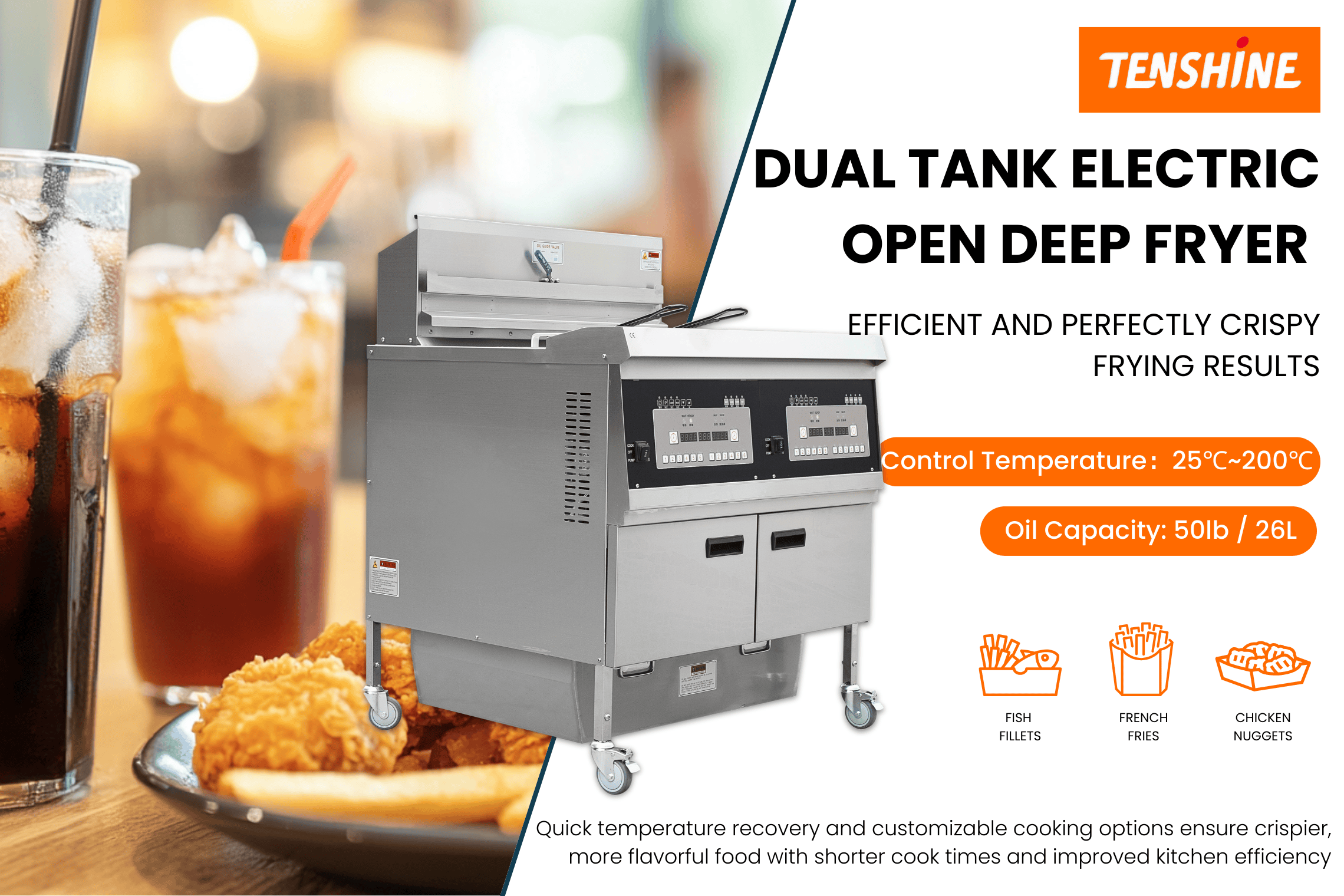 4-Tank Split Pot Electric Deep Fryers with Lifts Heating Elements and Oil Filtration System OFE-413