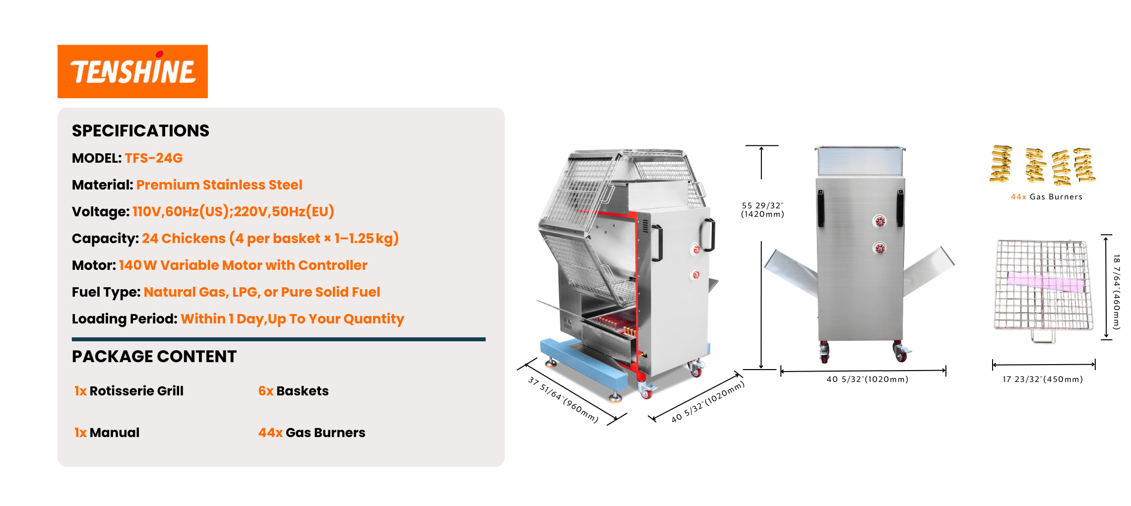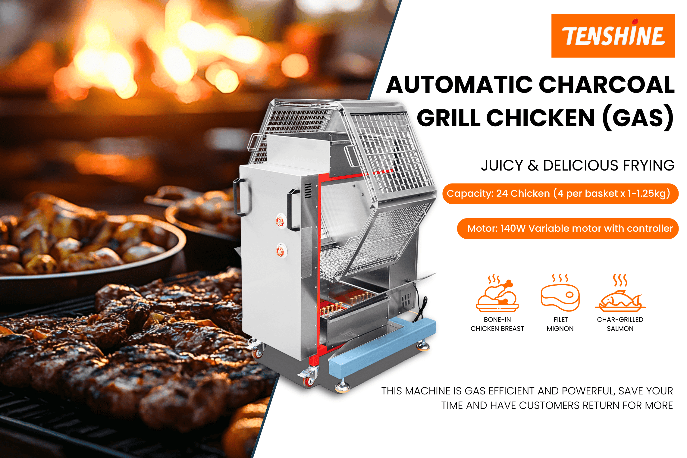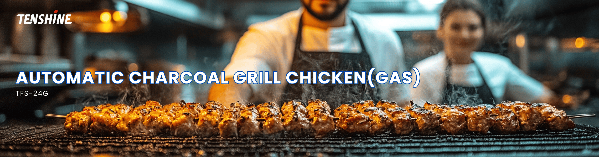 Automatic Gas and Charcoal Rotisserie Chicken Machine for Roasting 24 Butterfly Chickens TFS-24G
