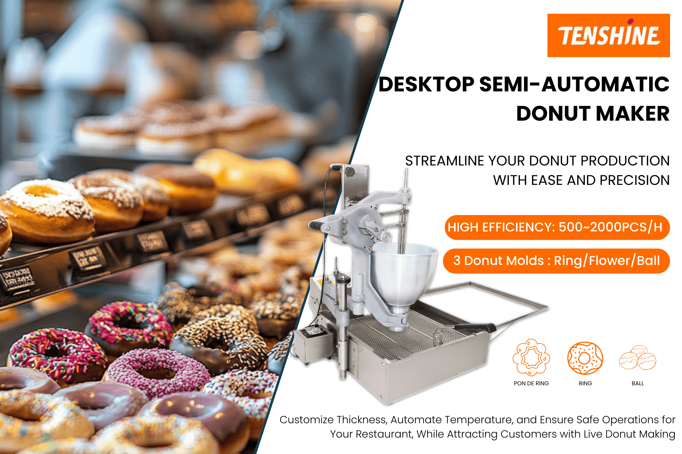 Desktop Semi-Automatic Donut Maker with 3 Adjustable Thickness Molds Donut Machine T-102S