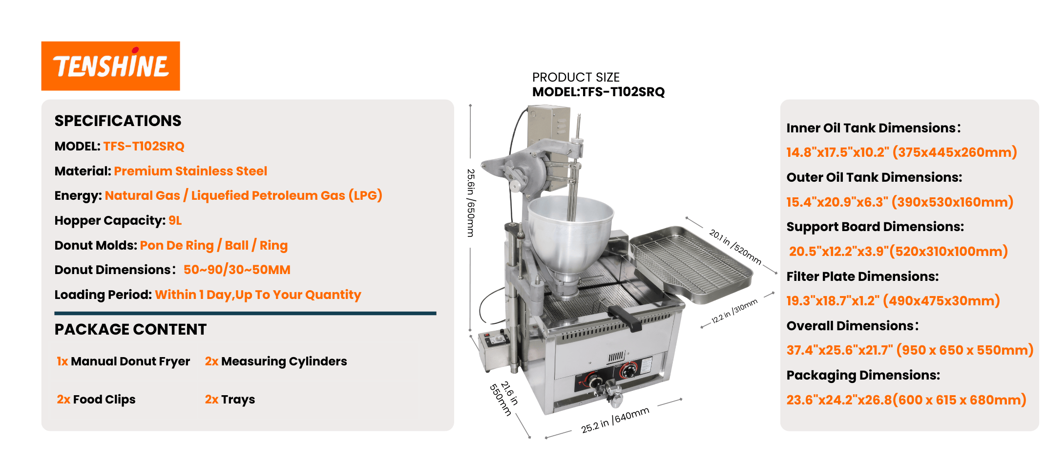 Desktop Semi-Automatic Gas Donut Maker Adjustable Thickness Donut Maker T-102SRQ