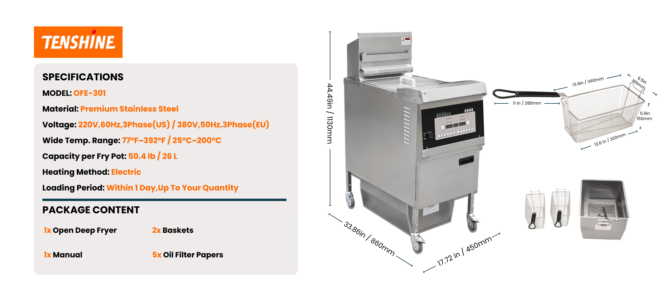 Commercial Electric Floor Open Deep Fryers OFE - 301Commercial Electric Floor Open Deep Fryers