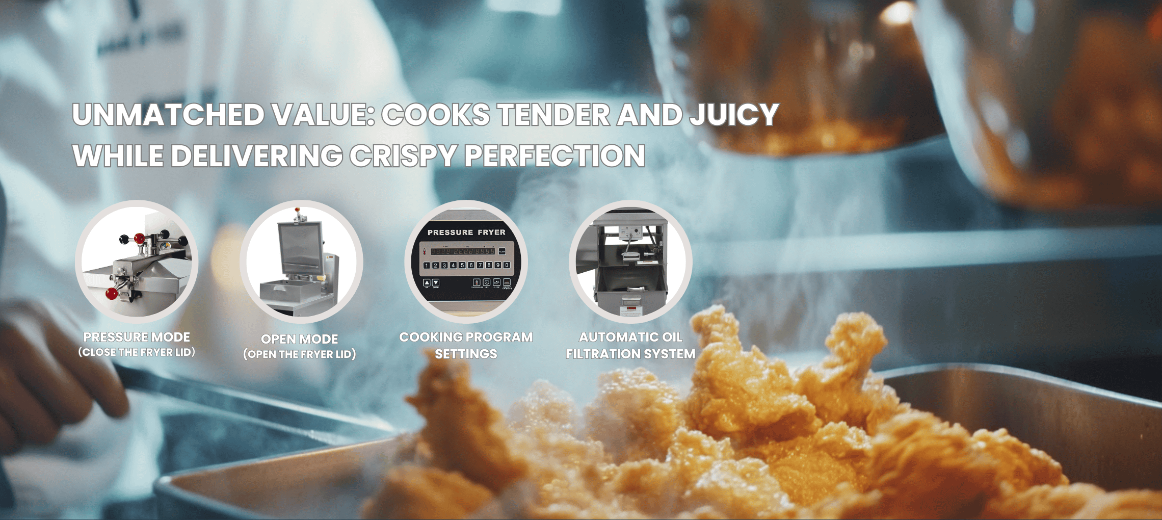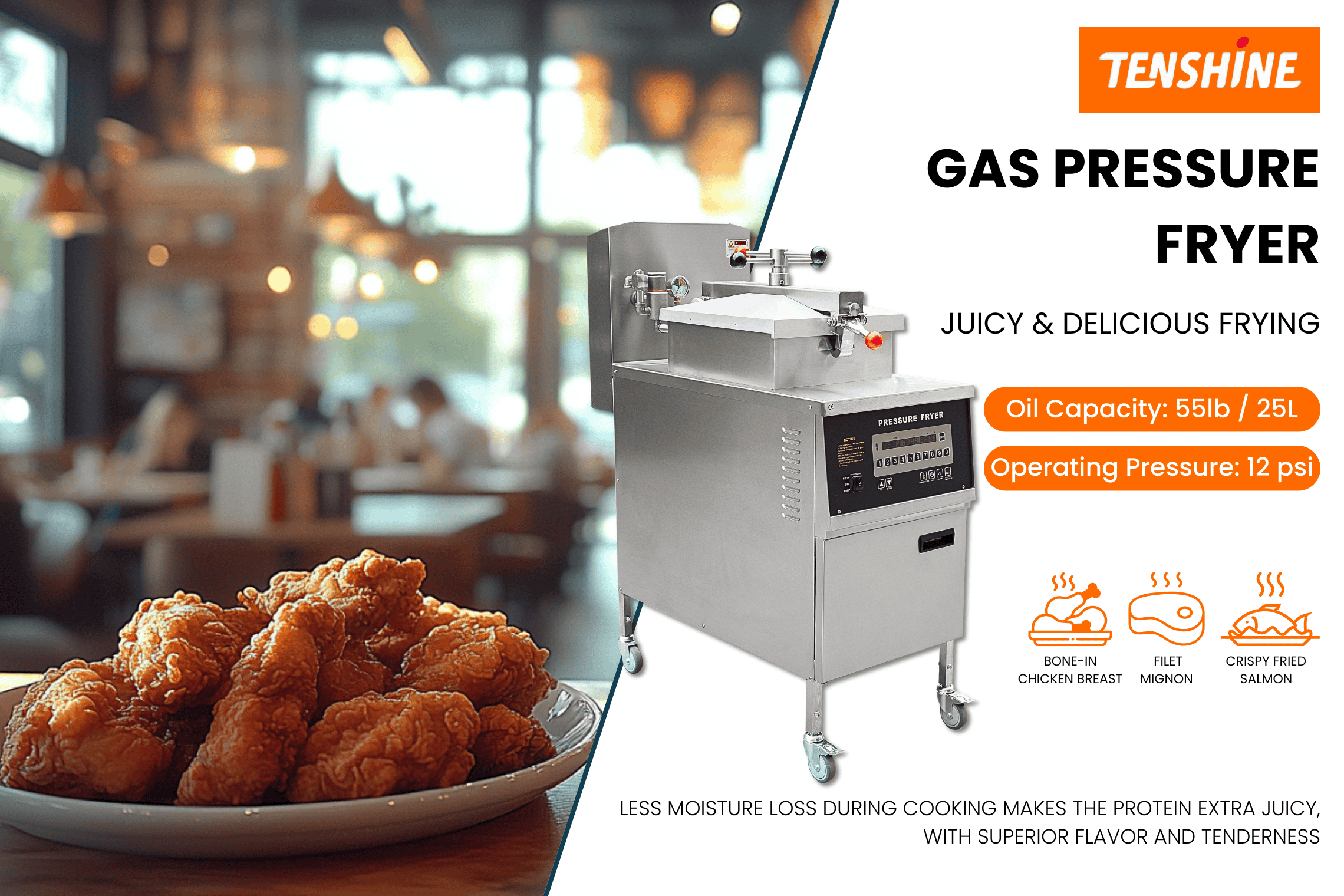 PFG800 Commercial Gas Pressure Fryer 88000 BTU 55lb/25L with Oil Filtration System - Pressure Fryer