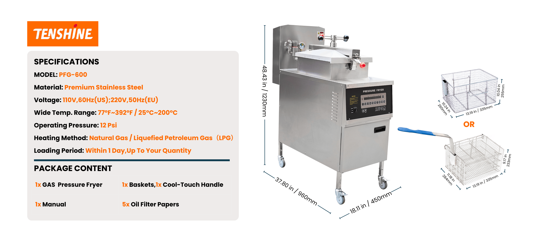 PFG600 Commercial Gas Pressure Fryer 88000BTU 55lb/25L with Oil Filtration SystemPressure Fryer